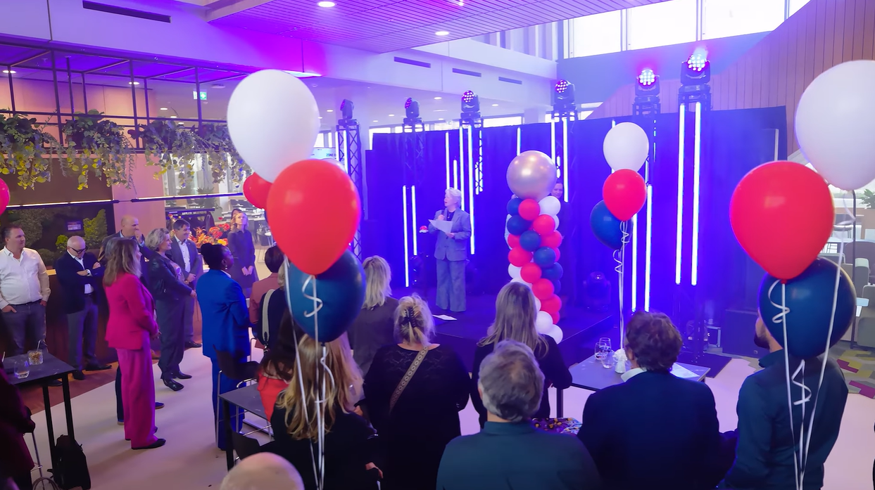 De officiële opening vond plaats op 5 november, in aanwezigheid van partners, gemeente en andere betrokkenen. In de centrale hal – het kloppend hart van het gebouw – gaven wethouder Mariève Craste, Yvonne van Mierlo (BrabantWonen) en Marjan Hammersma, bestuursvoorzitter van Avans, samen het startsein voor de ingebruikname. Met een druk op de rode knop, een lichtshow en applaus werd de campus feestelijk geopend.